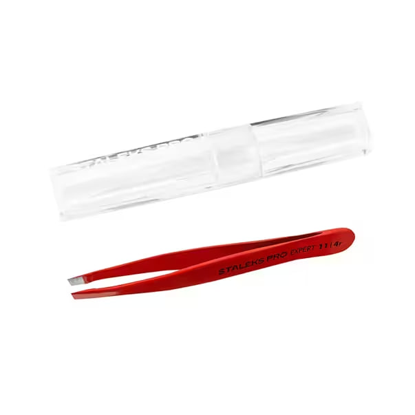 Пінцет для брів "Expert" скошений вузький червоний TE-11-4r