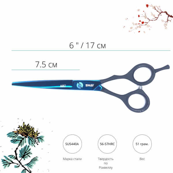 - Прямі ножиці Sway Art 6 дюймів серії 306.